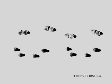 Tropy borsuka są charakterystyczne, dają podłużny, szeroki w palcach i wąski odcisk pięty, a ponadto w tropie widoczne jest odciśnięcie pięciu palców zakończonych długimi pazurami.